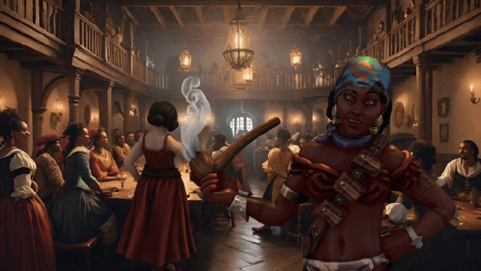 Meet up at Sad Skull. People are lined up to watch a ship coming in. A small merchant fleet was to be arriving. Captain Ondo – frigate (48 crew), “The Long Way Home” – escaped a pirate attack coming to town. Seems suspicious that they got away.