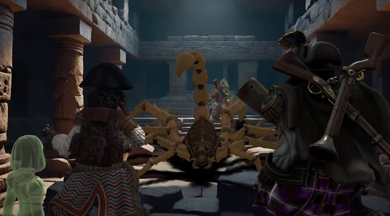 A beautiful stone portal greets us with the smell of death wafting from within. A series of stone puzzle tiles lays nearby and as we begin to inspect them a bull sized, pedipalp-less scorpion named Kenneth appears and introduces itself.