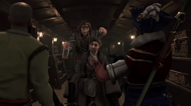 Their deal concluded with a man named Leif, south they sailed for work’d relief. Upon this island their crew were drawn, a refuge presented to them post storm, seeking the Sunstone come the dawn, evading Van Houten outside the norm.