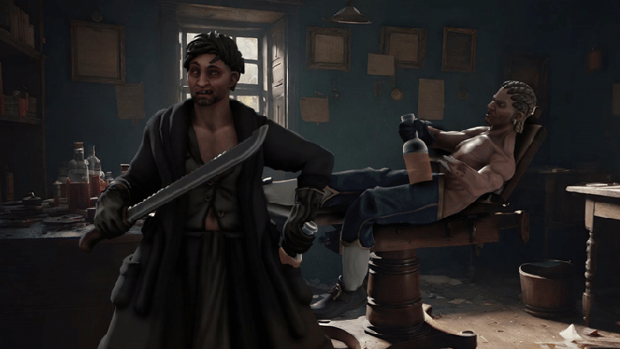 We returned to Hollow Ground, and Dr. Mutilare we quickly found, we’d left him stored upon our ship, and Jim’s fish fine’ly found itself a sip.Dreben Koslev approached us drunk, his companions with a seabound trunk. “Ahoy sailor” Cap’n cried, “My nerves Julia has sorely tried,” he replied. To Flora’s then Dreben had fled, relieved Lucinda was not found dead. Kimona received the saliva pure, to compound for a Koslev cure.Then Mutilare began his surgeon’s work, to turn Adam’s stump into a dirk. Or whisk. We surely hoped it would be brisk.Bart attacked a coconut tree, as Cap’n did carouse with me. Bart left to find a forgotten soul, Alva whose journeys had taken toll.Cap’n’s silver gone its way while night held her within its sway, no blood within her congealed, her secrets to the drunks revealed.My silver similarly had fled, ‘fore c’ressing Dreben cozied in his bed, gagged and bound in prison yard come morning found by prison guard.We checked our friend his stump upgraded, Cap’n’s wounds now inspected faded. We shopped for weapons, discounted tho’, when we heard a panic at the dock grow.A viking long ship its sails low, a giant stood upon its prow. Surrounded in mysterious mist, most on the shore had got the gist.