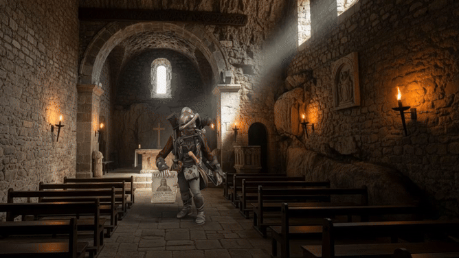 Bart in church with Cap’n necking, silver lost and town aflame.